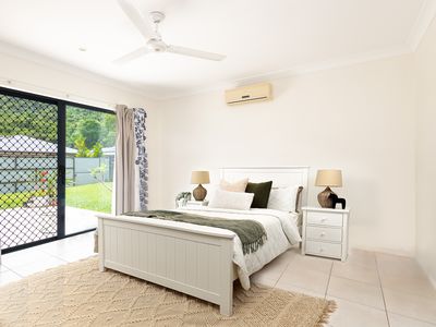 This home is only a two minute stroll to the cool Freshwater Creek swimming holes. It is surrounded by upmarket homes in the northern end of Redlynch Valley Estate. Walk across the road to a safe cycling/ walking path that children can take to Redlynch schools. All Redlynch shopping, medical and sporting facilities are within a five-minute drive. An easy 20 minute drive will take you to Cairns CBD and International Airport, plus the Northern Beaches.