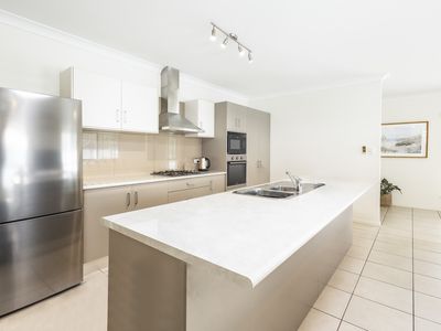 - Stylish kitchen with gas cooktop, stainless steel appliances and an island bench with breakfast bar – perfect for the kids.