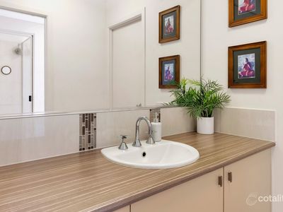 Inside, the kitchen is well-appointed with a breakfast island, induction cooktop, pantry with roller drawers and quality appliances. The flexible floorplan provides excellent separation with a dedicated media room and a separate study nook with built-in desk, ideal for working from home or study.